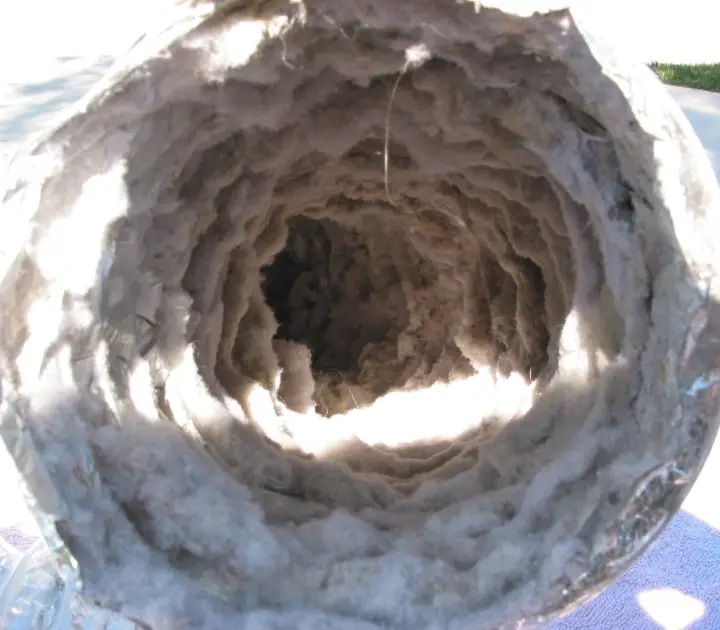 Your dryer vent is the air and moisture that comes out of the back side of your dryer. It needs to exit the house in order for the dryer to work properly. In most homes the dryer vents through a shiny flexible duct into the wall void pipe and then goes up and out of the house. This vent will block up on the roof first and then backfill that entire pipe with lint. This creates a fire hazard and causes many dryers to slow down or stop working all together. Most people are not aware of this. Here are some pics and a video to explain more.